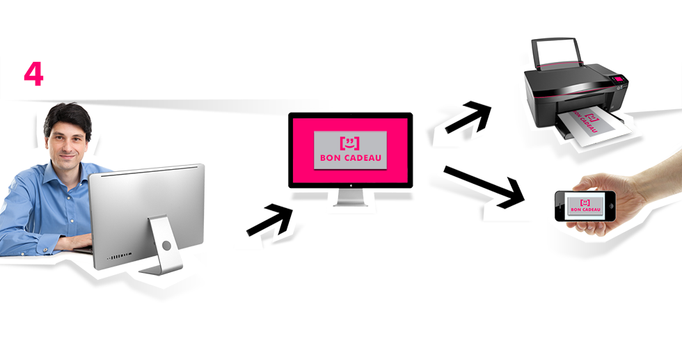 J'IMPRIME MON BON CADEAU OU DEMANDE l'ENVOI D'un CODE SUR MON TÉLÉPHONE.